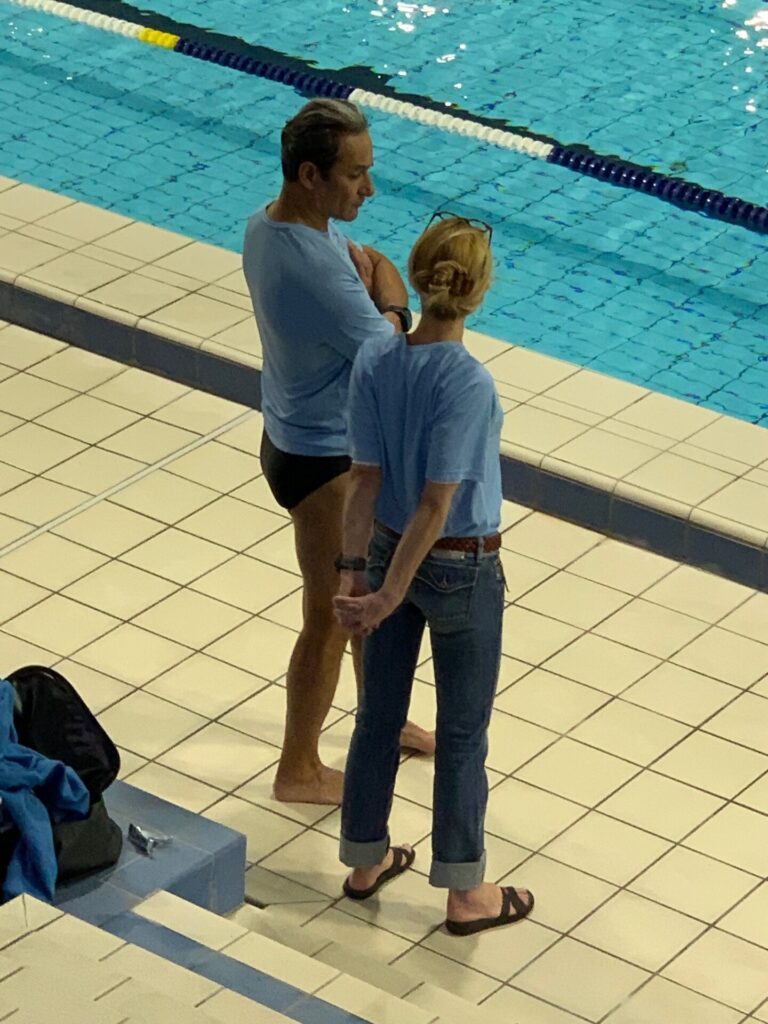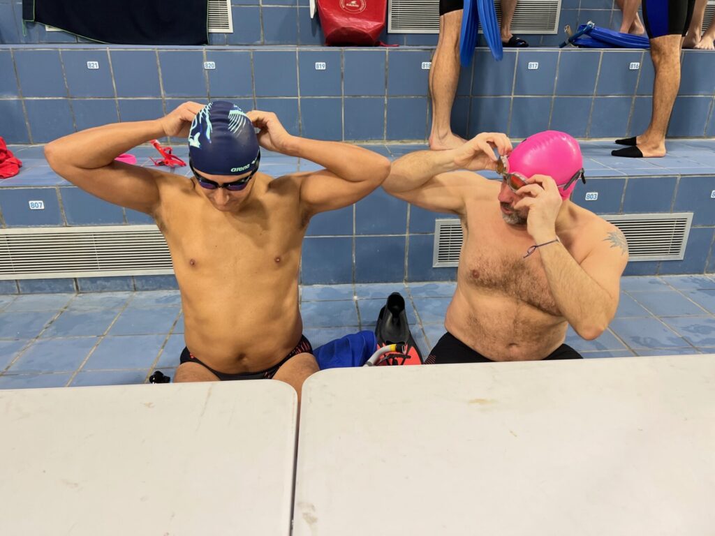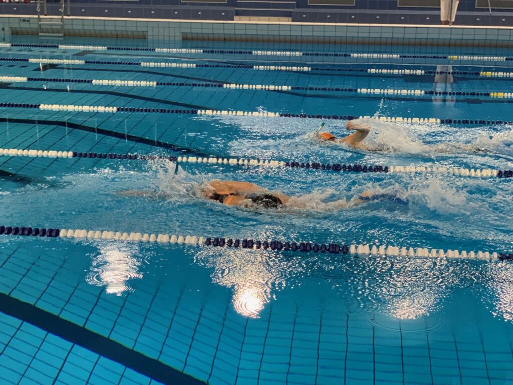 Avant les différentes épreuves du Championnat de Saint-Germain-en-Laye, échauffement des nageurs …
