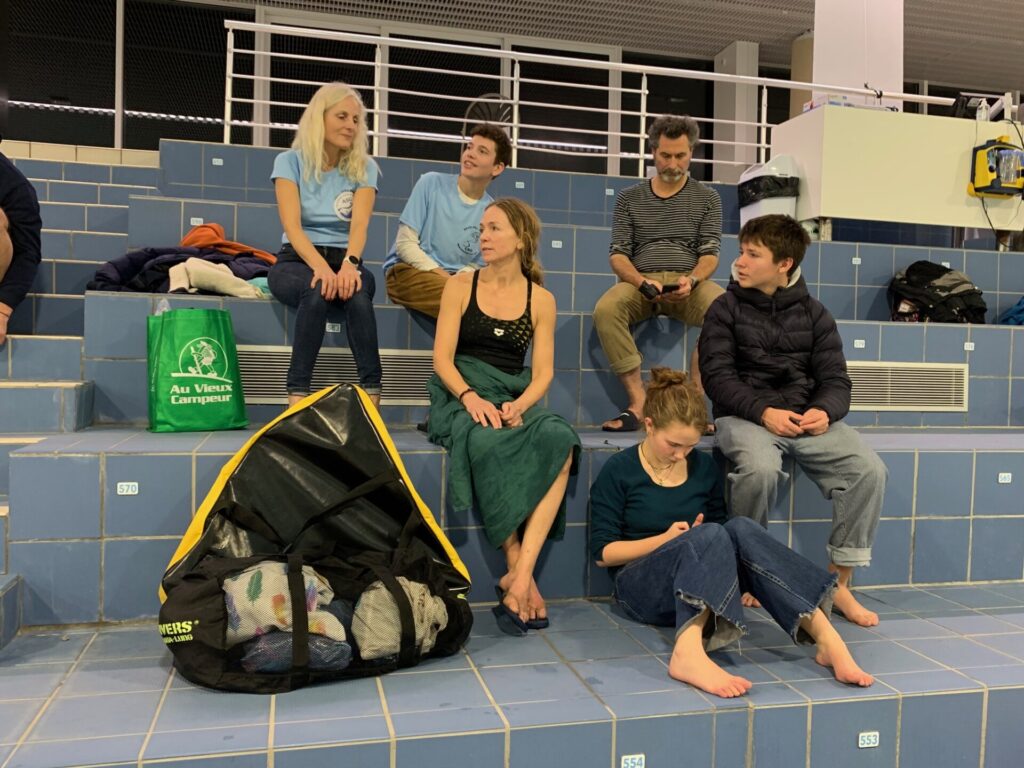 Maï après l’épreuve d’apnée ; Joëlle dans son rôle de cheffe d’équipe et de reporter photographique …