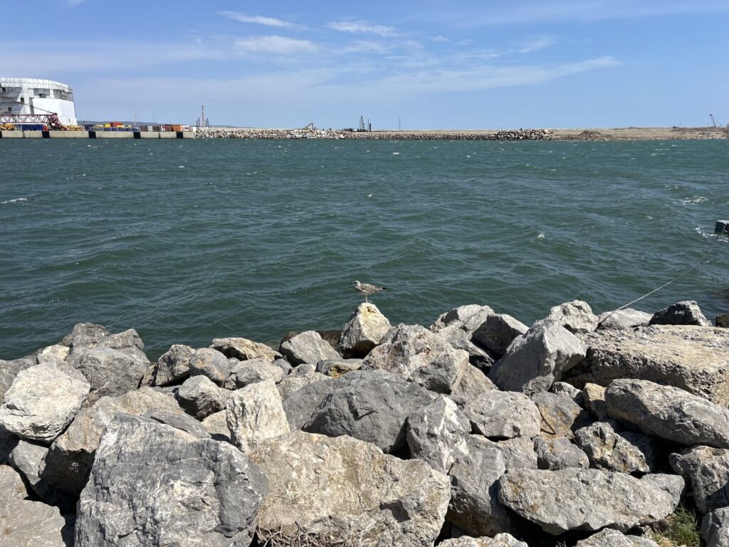 La première partie est plutôt rapide car portée par le courant, le clapot est fort et on sent la houle qui se renforce.