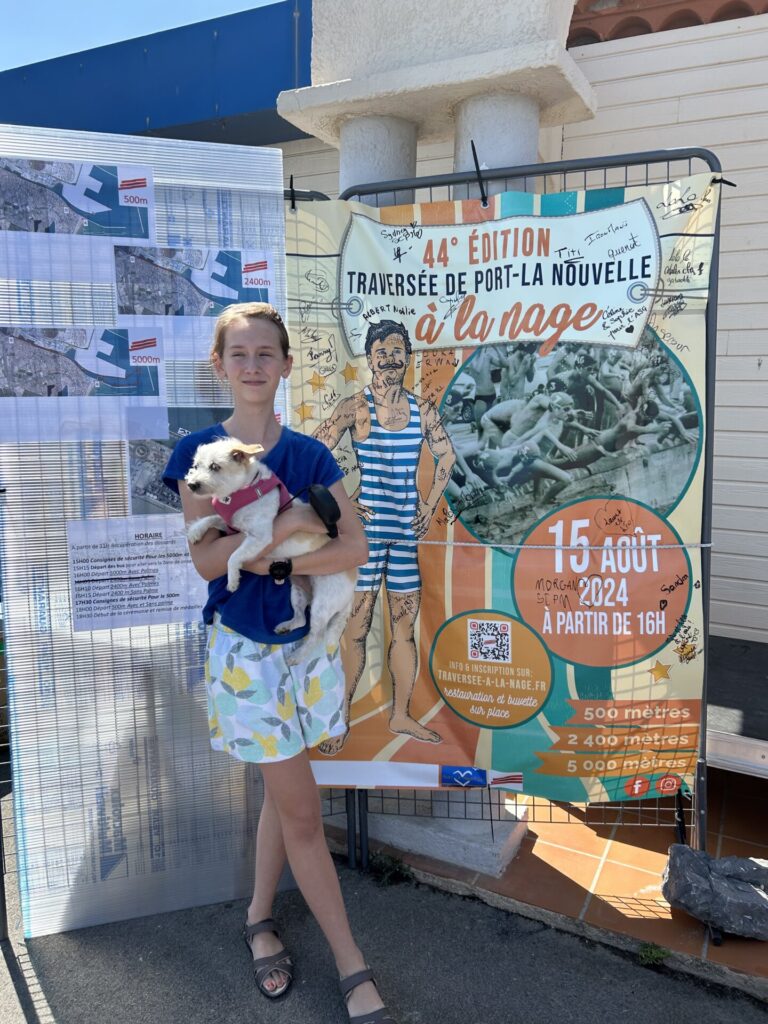 « J’ai souvent passé mes vacances entre Narbonne et Saint-Pierre-sur-Mer avant de migrer dans les terres vers Carcassonne. En guise de clin d’œil à ces souvenirs de vacances, je me suis donc inscrite sur le 5000 m avec palmes (monopalme) ainsi que sur le 500 m avec palmes avec Sophie (bipalme).