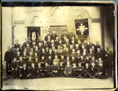 Groupe du patronage devant la chapelle qui est située sur la Promenade de la Baumette, vers 1890. Archives municipales Angers, 25 Fi.