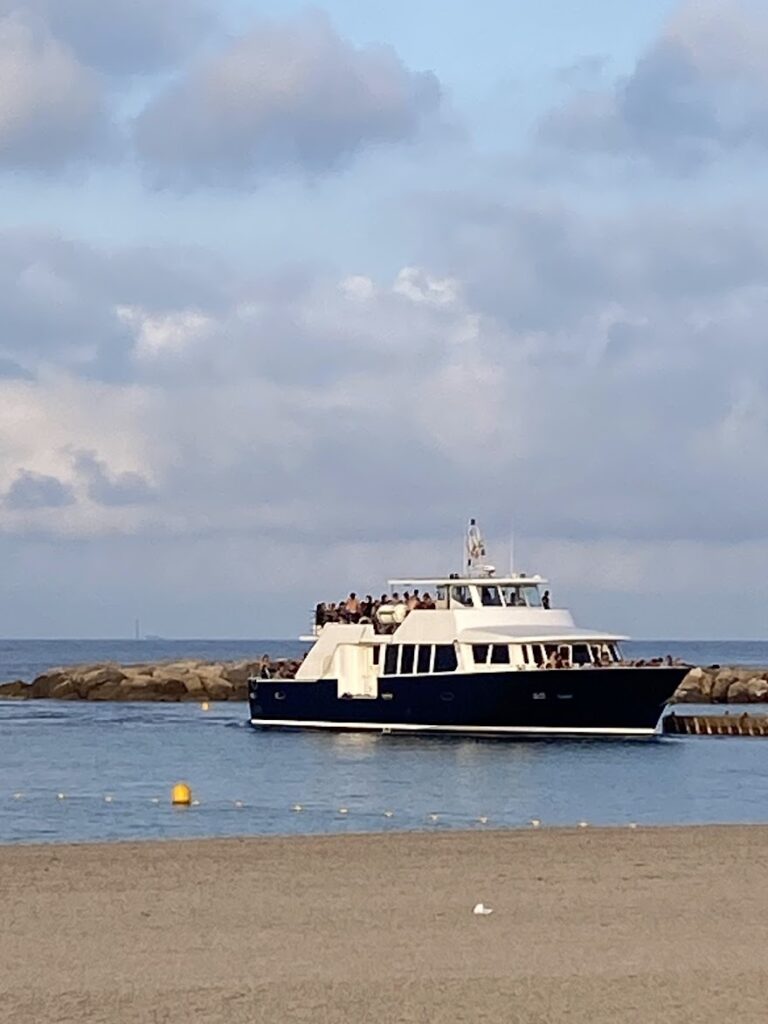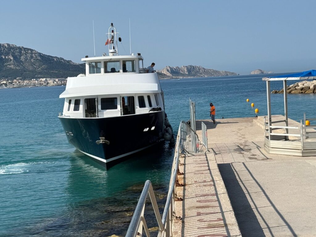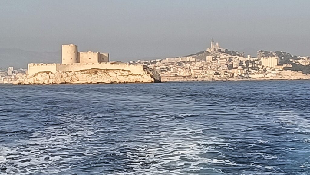 Le bateau qui va faire la navette pour emporter les nageurs sur le site historique du “Château de Monte Cristo” …