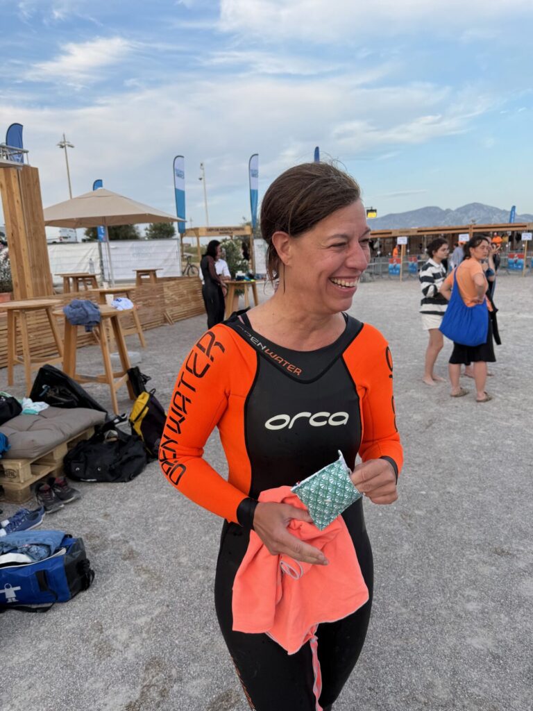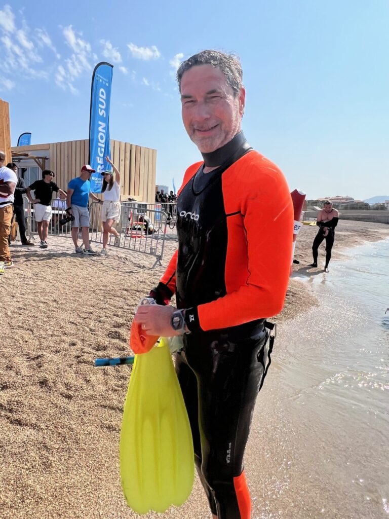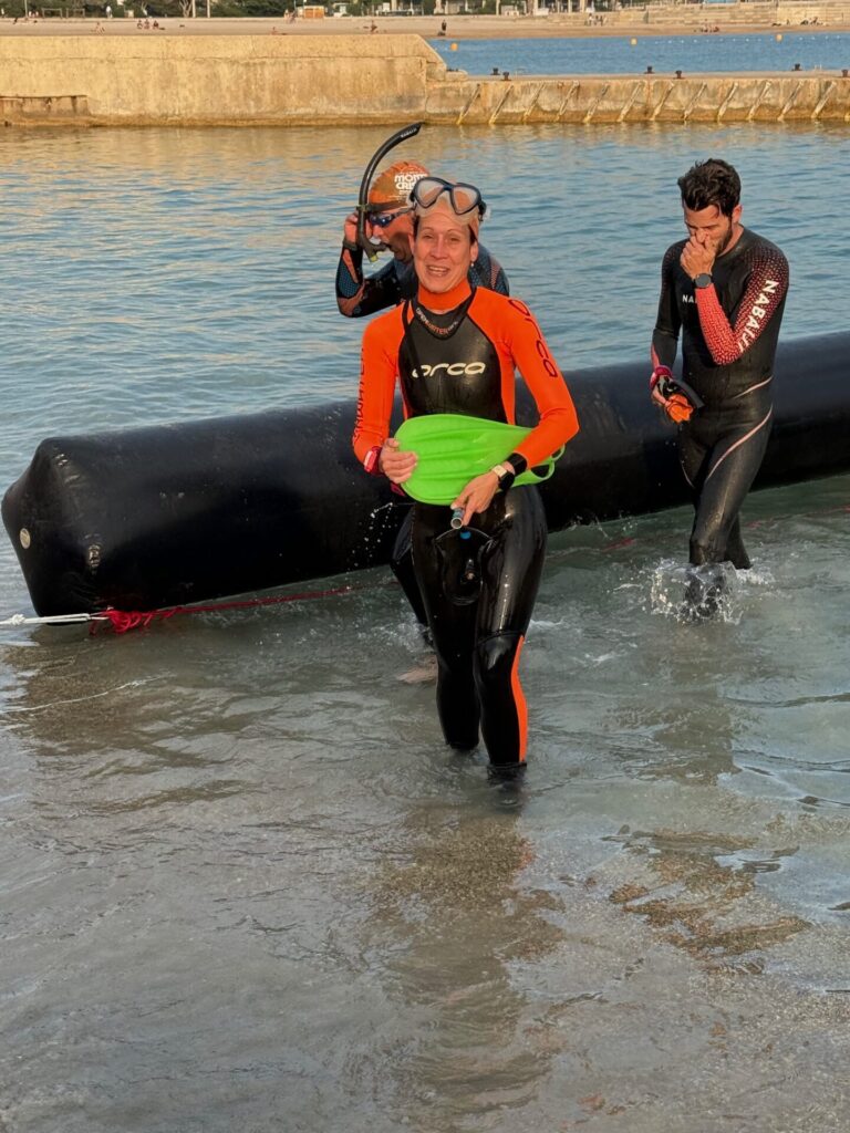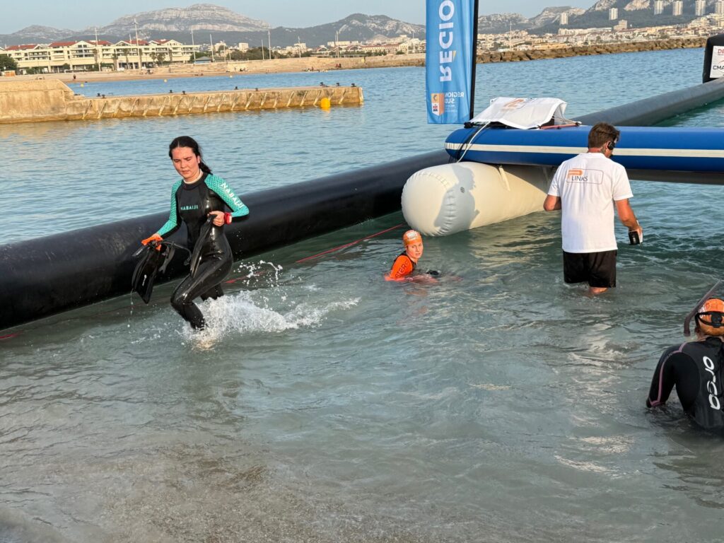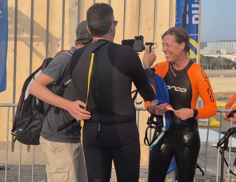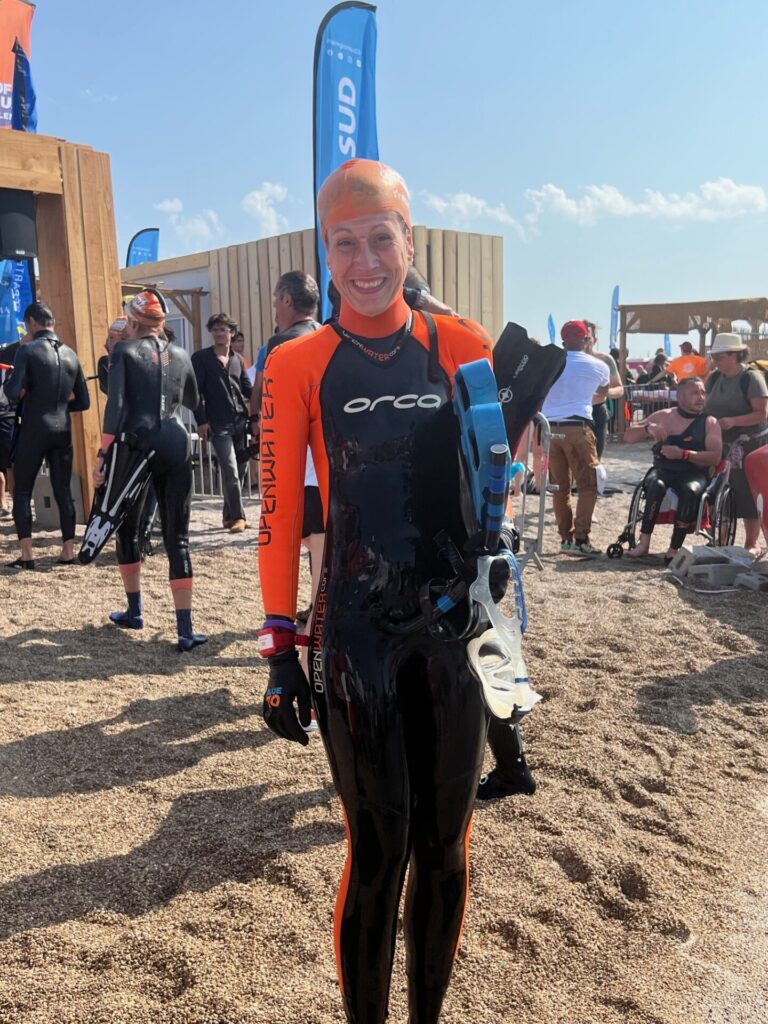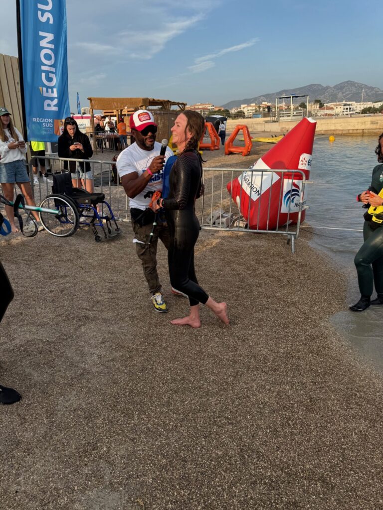 Joëlle ne l’a pas vu sortir de l’eau à l’arrivée tellement il est rapide …