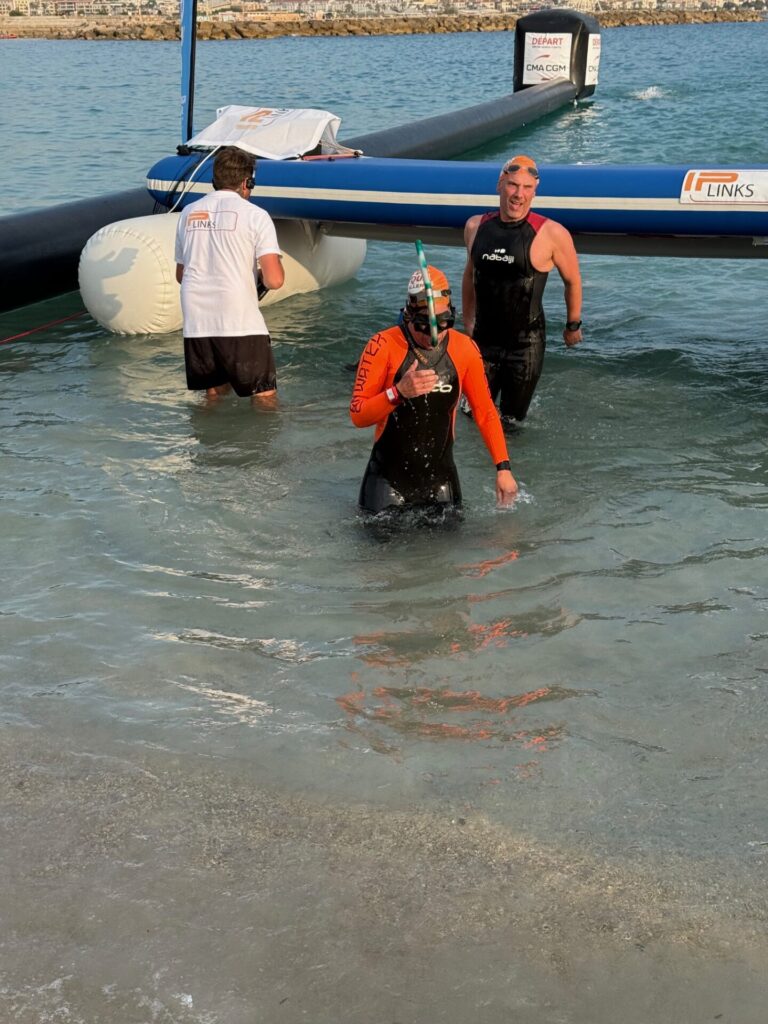 Le DEFI est résolument une aventure collective avant d être un défi individuel. Quel plaisir de partager ces moments avec une team fantastique, trop de moments inoubliables pour tous les citer, mais je retiens l ovation faite à toi Jean Claude à ta sortie de la mer Méditerranée, tout sourire après plus de 3h de nage en mer…